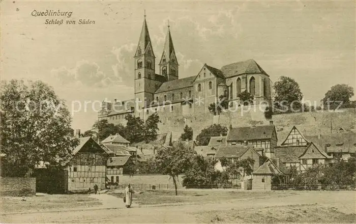 73820613 Quedlinburg Schloss von Sueden Quedlinburg postalisch gelaufen 1914 Erhaltung siehe scans [WerneD78] [WernPID7 ]