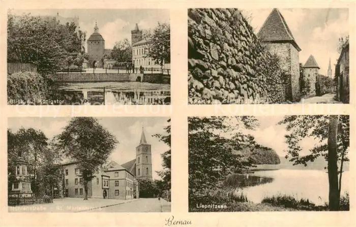 73820984 Bernau_Berlin_Mark Koenigstor Partie an der Stadtmauer Liepitzsee Muehlenstrasse St Marienkirche postalisch gelaufen 1921-1965 Erhaltung siehe scans [FriedD77] [Frierer ]