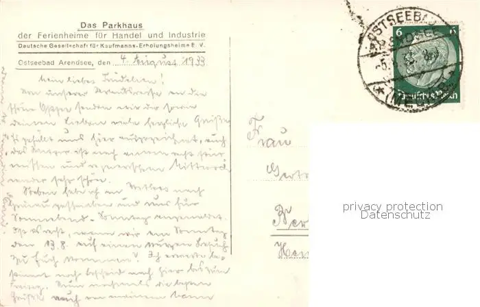 73820988 Arendsee_Altmark Das Parkhaus der Ferienheime fuer Handel und Industrie Arendsee Altmark postalisch gelaufen 1933 Erhaltung siehe scans [FriedD77] [Frierer ]