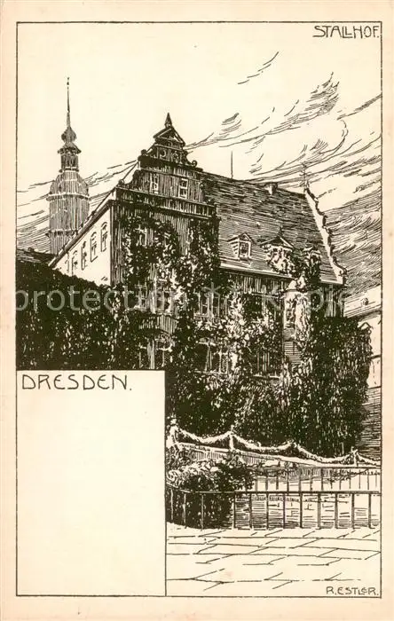 AK / Ansichtskarte 73821290 Dresden_Elbe Stallhof Zeichnung