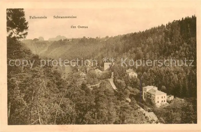 AK / Ansichtskarte 73821319 Bad_Schandau mit Falkenstein Schrammsteine Ostrau und Villen auf Ostrauer Flur Feldpost Bad_Schandau