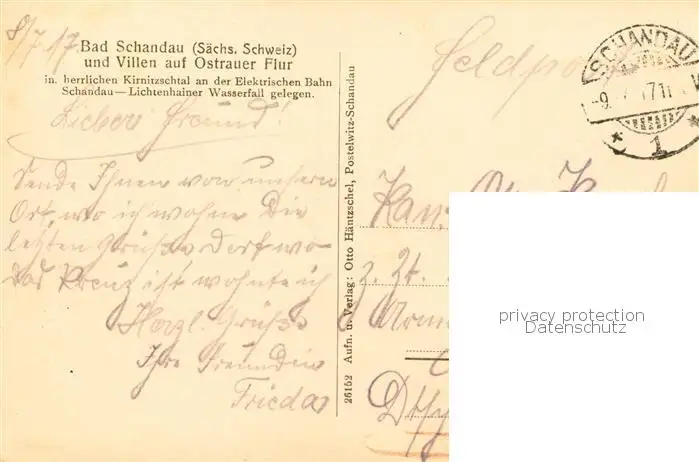 73821319 Bad_Schandau mit Falkenstein Schrammsteine Ostrau und Villen auf Ostrauer Flur Feldpost Bad_Schandau postalisch gelaufen 1917 Erhaltung siehe scans [FriedD77] [Frierer ]