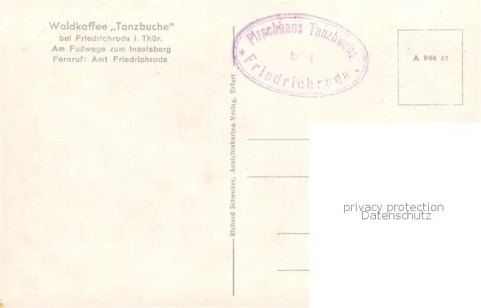 73821366 Friedrichroda Waldkaffee Tanzbuche Fussweg zum Inselsberg Friedrichroda postalisch nicht gelaufen 1921-1965 Erhaltung siehe scans [FriedD77] [Frierer ]