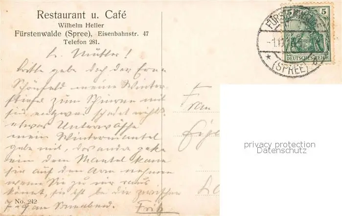 73821483 Fuerstenwalde_Spree Restaurant und Cafe am Markt Fuerstenwalde_Spree postalisch gelaufen 1905 Erhaltung siehe scans [WerneD78] [WernPID7 ]