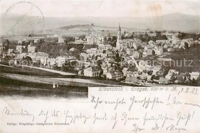 73821550 Eibenstock Panorama Eibenstock postalisch gelaufen 1903 Erhaltung siehe scans [FriedD77] [Frierer ]