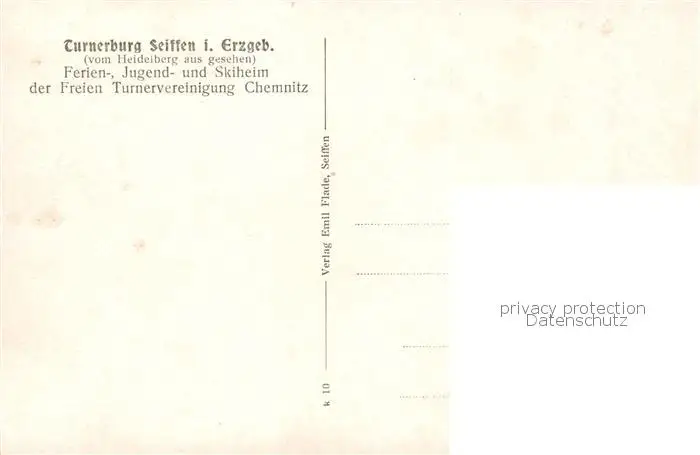 73822111 Seiffen_Erzgebirge Ferien Jugend und Skiheim der Freien Turnervereinigung Chemnitz Seiffen Erzgebirge postalisch nicht gelaufen 1921-1965 Erhaltung siehe scans [WerneD78] [WernPID7 ]