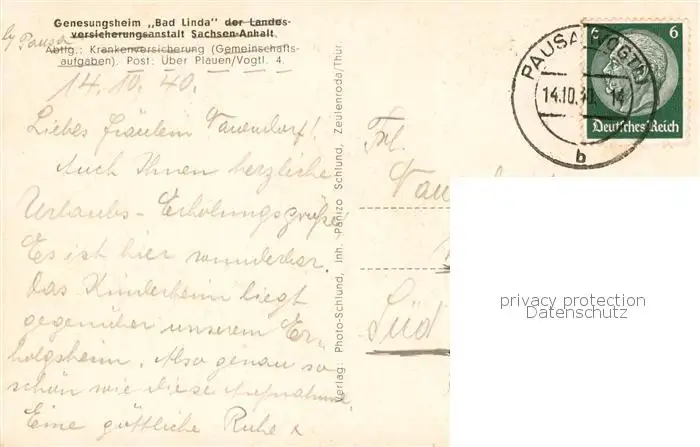 73822138 Pausa Kinderheim Pausa postalisch gelaufen 1940 Erhaltung siehe scans [WerneD78] [WernPID7 ]
