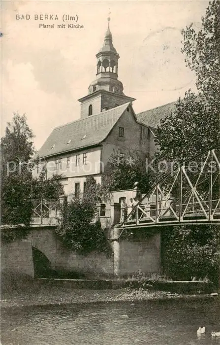 73822212 Bad_Berka Pfarrei mit Kirche Bad_Berka postalisch gelaufen 1910 Erhaltung siehe scans [WerneD78] [WernPID7 ]