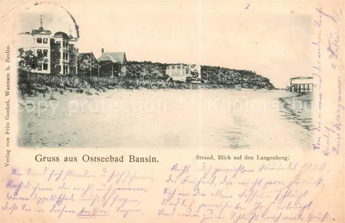 73822245 Bansin_Ostseebad Strand Blick auf den Langenberg Bansin_Ostseebad postalisch gelaufen 1899 Erhaltung siehe scans [FriedD77] [Frierer ]