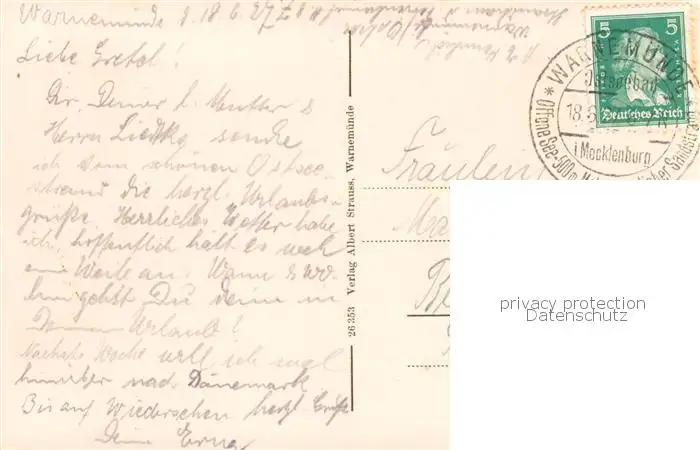 73822380 Warnemuende_Ostseebad Am Strom Warnemuende_Ostseebad postalisch gelaufen 1927 Erhaltung siehe scans [WerneD78] [WernPID7 ]