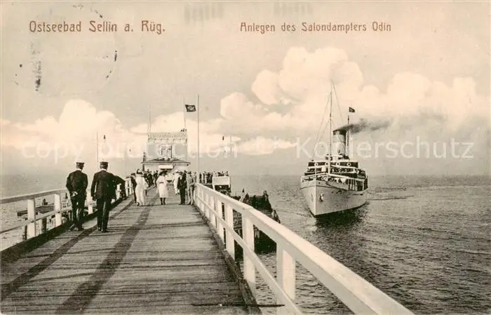 73822415 Sellin__Ruegen Anlegen des Salondampfers Odin postalisch gelaufen 1915 Erhaltung siehe scans [WerneD78] [WernPID7 ]