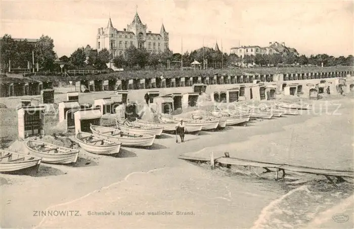 AK / Ansichtskarte 73822424 Zinnowitz_Ostseebad Schwabes Hotel und westlicher Strand Zinnowitz_Ostseebad
