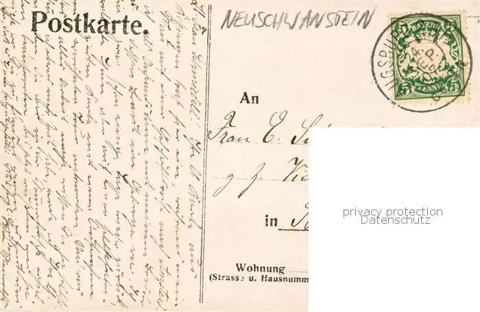 73823381 Schloss_Neuschwanstein Panorama Schloss_Neuschwanstein postalisch gelaufen 1907 Erhaltung siehe scans [FriedD77] [Frierer ]