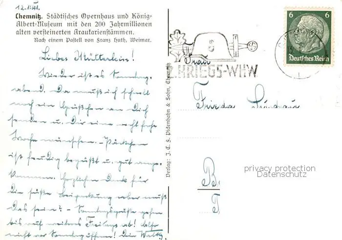 73824006 Chemnitz Staedt Opernhaus und Koenig Albert Museum Chemnitz postalisch gelaufen 1921-1965 Erhaltung siehe scans [WerneD78] [WernPID7 ]