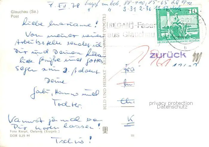 73826304 Glauchau Post Glauchau postalisch gelaufen 1978 Erhaltung siehe scans [WerneD78] [WernPID7 ]