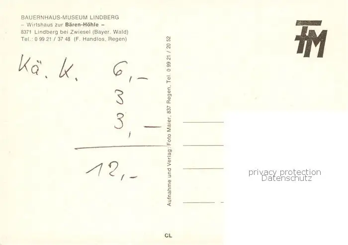 73828599 Lindberg_Regen Bauernhaus Museum Wirtshaus zur Baeren Hoehle Lindberg Regen postalisch nicht gelaufen nach 1965 Erhaltung siehe scans [WerneD78] [WernPID7 ]