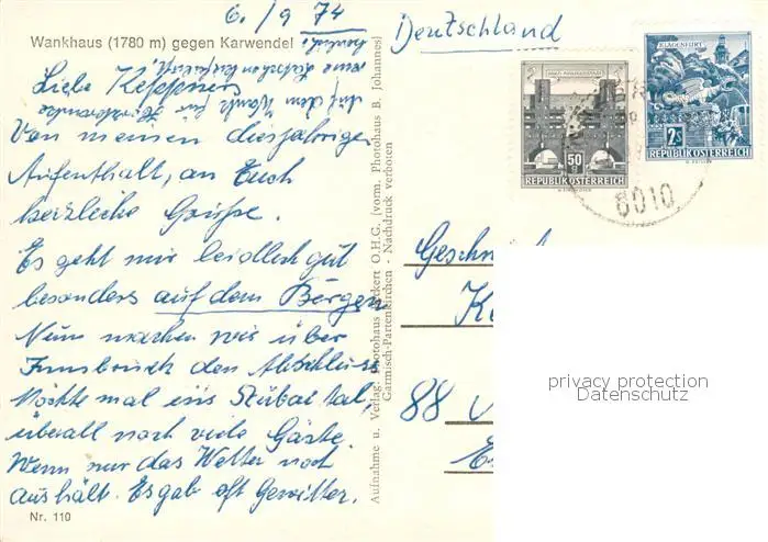 73828637 Wankhaus_1780m_Garmisch-Partenkirchen mit Karwendel postalisch gelaufen 1974 Erhaltung siehe scans [WerneD78] [WernPID7 ]