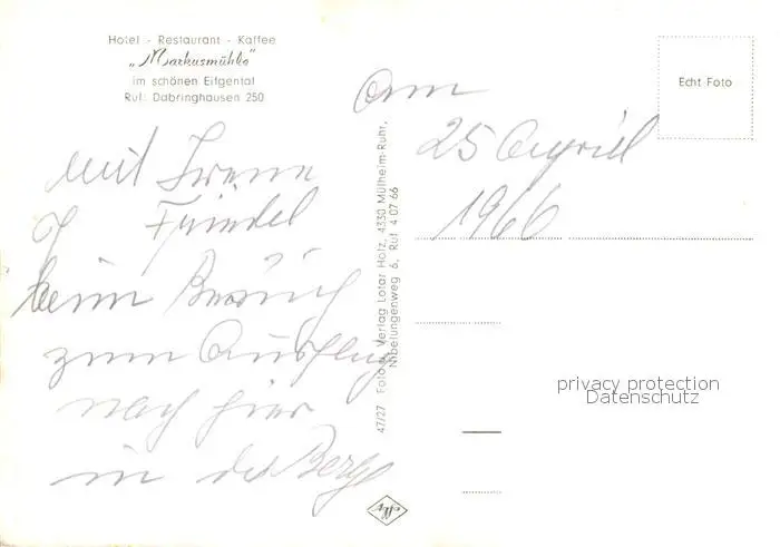 73828714 Dabringhausen Hotel Restaurant Markusmuehle Dabringhausen postalisch nicht gelaufen 1966 Erhaltung siehe scans [WerneD78] [WernPID7 ]