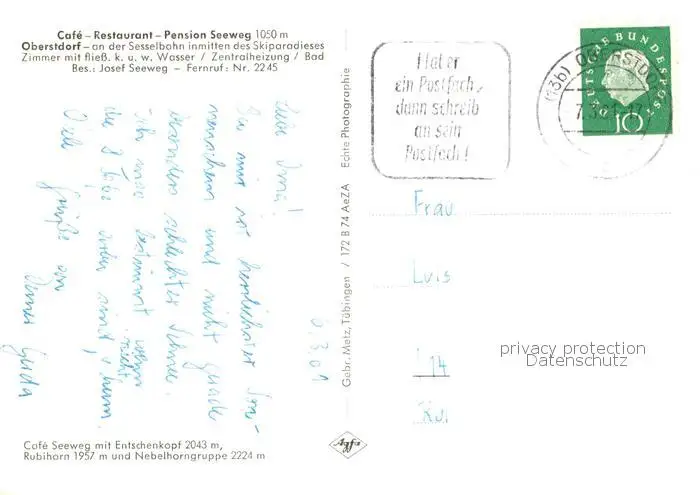 73828722 Oberstdorf Cafe Restaurant Seeweg Oberstdorf postalisch gelaufen 1961 Erhaltung siehe scans [WerneD78] [WernPID7 ]