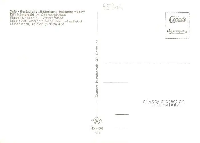 73828783 Nuembrecht Cafe Restaurant Historische Holsteinsmuehle Nuembrecht postalisch nicht gelaufen 1921-1965 Erhaltung siehe scans [WerneD78] [WernPID7 ]
