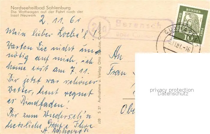 73828861 Sahlenburg Wattwagen auf der Fahrt nach der Insel Neuwerk Sahlenburg postalisch gelaufen 1961 Erhaltung siehe scans [FriedD77] [Frierer ]