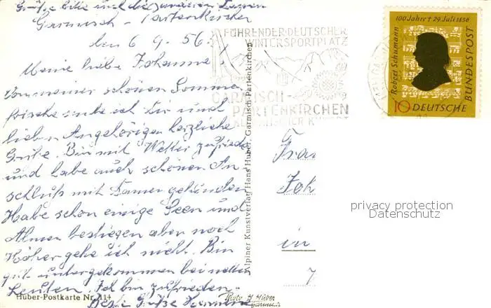 73828877 Waxensteine_3696m_Grainau Floriansplatz mit Zugspitze postalisch gelaufen 1956 Erhaltung siehe scans [FriedD77] [Frierer ]