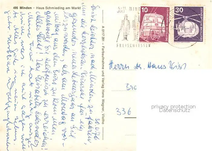 73828894 Minden__Westfalen_Weser Haus Schmieding am Markt postalisch gelaufen 1976 Erhaltung siehe scans [FriedD77] [Frierer ]