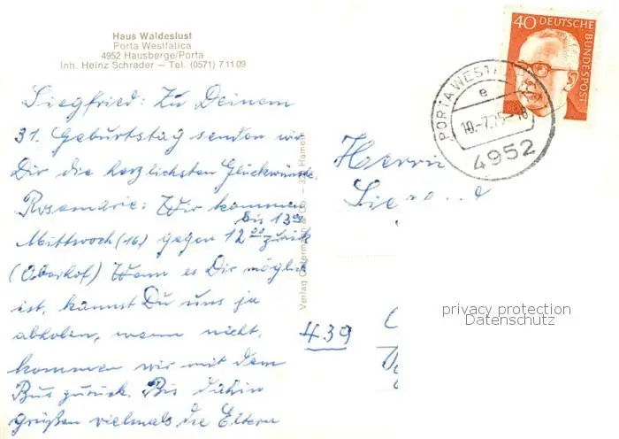 73828947 Hausberge_Porta_Westfalica Hotel Restaurant Haus Waldeslust postalisch gelaufen 1975 Erhaltung siehe scans [FriedD77] [Frierer ]
