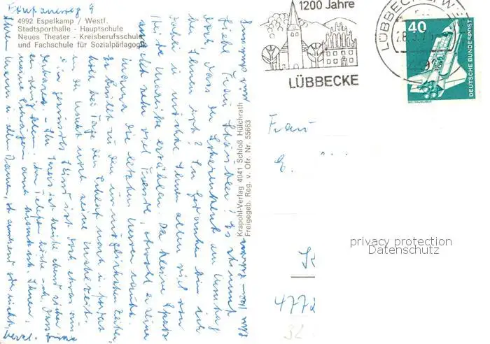 73828958 Espelkamp Stadtsporthalle Schule Theater Espelkamp postalisch gelaufen 1976 Fliegeraufnahme Erhaltung siehe scans [FriedD77] Fliegeraufnahme[Frierer ]