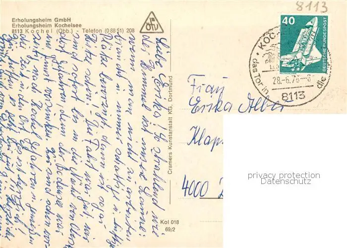 73829022 Kochelsee Erholungsheim Kochelsee postalisch gelaufen 1976 Erhaltung siehe scans [WerneD78] [WernPID7 ]