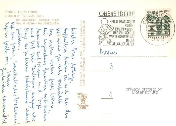 73829281 Gruben_Oberstdorf Cafe und Hotel Garni Gruben Gruben_Oberstdorf postalisch gelaufen 1965 Erhaltung siehe scans [WerneD78] [WernPID7 ]