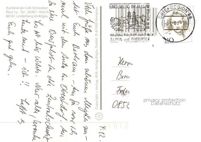 73829441 Ried_Altusried Panorama LVA Fachklinik Gastraum Ried Altusried postalisch gelaufen 2000 Erhaltung siehe scans [FriedD77] [Frierer ]