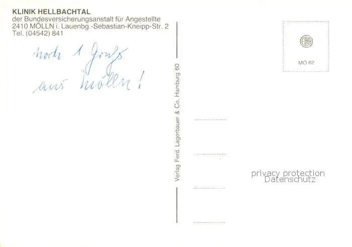 73829453 Moelln__Lauenburg Klinik Hellbachtal postalisch nicht gelaufen nach 1965 Erhaltung siehe scans [FriedD77] [Frierer ]