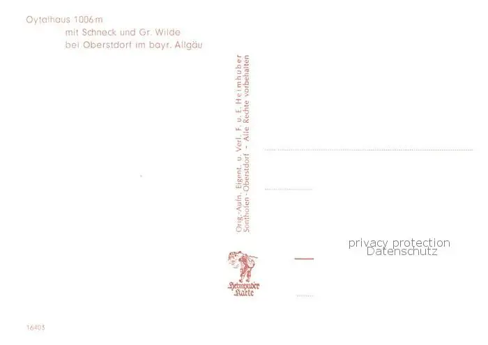 73829464 Oytalhaus_1010m_Oberstdorf mit Schneck und Gr Wilde postalisch nicht gelaufen 1921-1965 Erhaltung siehe scans [FriedD77] [Frierer ]