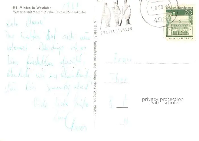 73829676 Minden__Westfalen_Weser Wesertor mit Martini Kirche Dom und Marienkirche postalisch gelaufen 1968 Erhaltung siehe scans [FriedD77] [Frierer ]