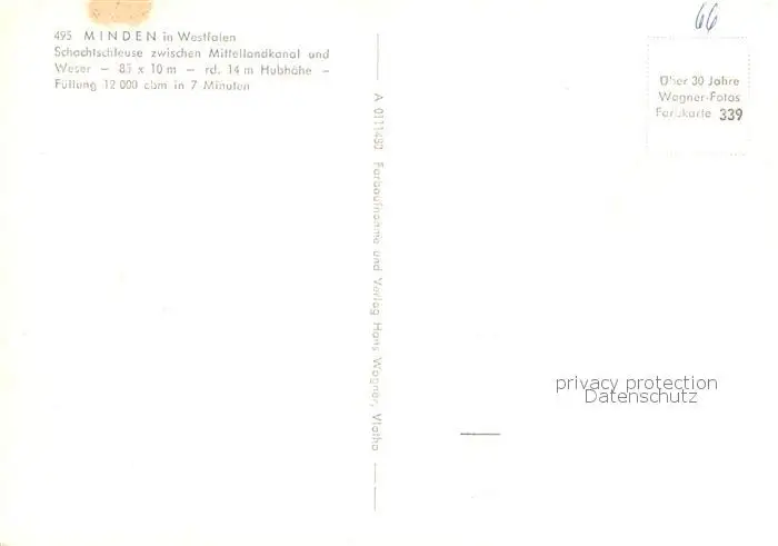 73829703 Minden__Westfalen_Weser Schachtschleuse zwischen Mittellandkanal und Weser postalisch nicht gelaufen nach 1965 Erhaltung siehe scans [FriedD77] [Frierer ]