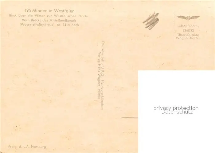 73829713 Minden__Westfalen_Weser Schachtschleuse Wasserstrassenkreuz Weserpartie postalisch nicht gelaufen nach 1965 Fliegeraufnahme Erhaltung siehe scans [FriedD77] Fliegeraufnahme[Frierer ]