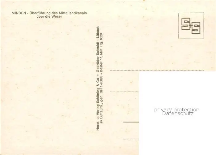 73829716 Minden__Westfalen_Weser ueberfuehrung des Mittellandkanals ueber die Weser postalisch nicht gelaufen nach 1965 Fliegeraufnahme Erhaltung siehe scans [FriedD77] Fliegeraufnahme[Frierer ]