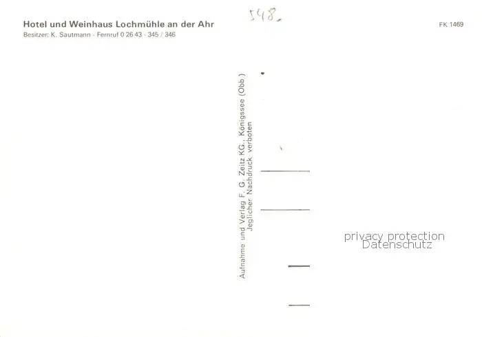 73829859 Lochmuehle_Kirn_Nahe Hotel und Weinhaus Lochmuehle an der Ahr Lochmuehle_Kirn_Nahe postalisch nicht gelaufen nach 1965 Erhaltung siehe scans [WerneD78] [WernPID7 ]