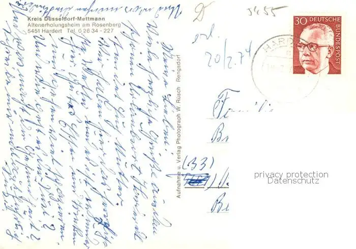 73829877 Hardert Altenerholungsheim Details Hardert postalisch gelaufen 1974 Erhaltung siehe scans [WerneD78] [WernPID7 ]