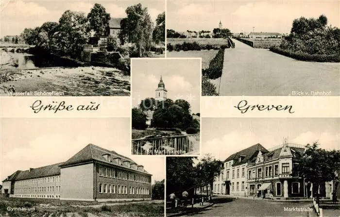 73830184 Greven_Boizenburg Wasserfall Schoeneflieth Bahnhof Gymnasium Marktstrasse Greven Boizenburg postalisch gelaufen 1921-1965 Erhaltung siehe scans [FriedD77] [Frierer ]
