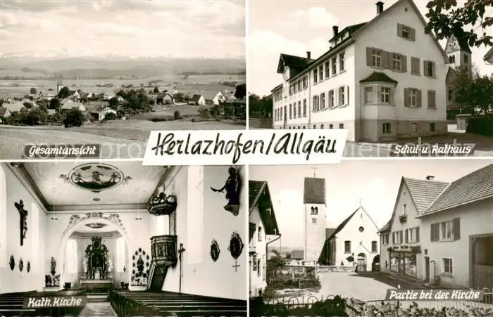 AK / Ansichtskarte 73830203 Herlazhofen Panorama Schul und Rathaus Kath Kirche Inneres Partie an der Kirche Herlazhofen