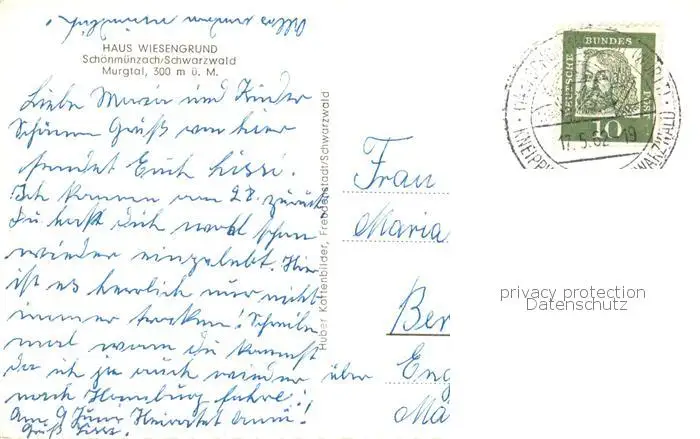 73830220 Schoenmuenzach Haus Wiesengrund Gastraeume Schoenmuenzach postalisch gelaufen 1962 Erhaltung siehe scans [FriedD77] [Frierer ]