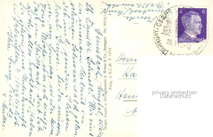 73830228 Murgtal_Baden Blick vom Schloss Erberstein Murgtal_Baden postalisch gelaufen 1942 Erhaltung siehe scans [FriedD77] [Frierer ]