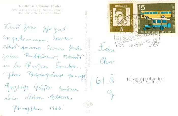 73830268 Altensteig_Schwarzwald Panorama Gasthof Pension Baessler Gaststube Altensteig_Schwarzwald postalisch gelaufen 1966 Erhaltung siehe scans [FriedD77] [Frierer ]