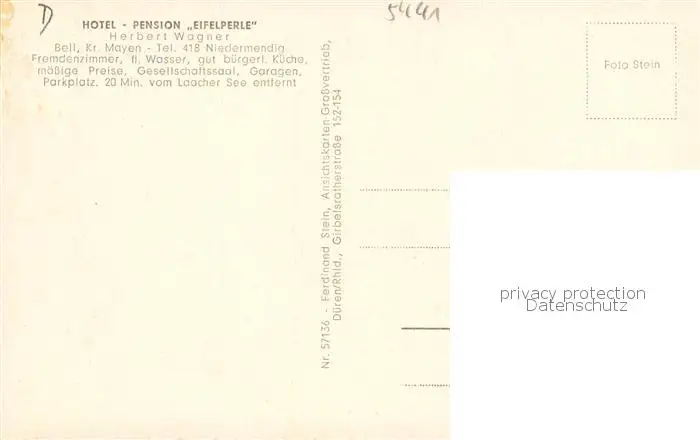 73830339 Bell_Eifel Panorama Hotel Pension Eifelparle Gaststube Bell_Eifel postalisch nicht gelaufen 1921-1965 Erhaltung siehe scans [FriedD77] [Frierer ]