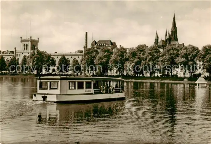 AK / Ansichtskarte 73830452 Schwerin__Mecklenburg Faehre Schwerin auf dem Pfaffenteich