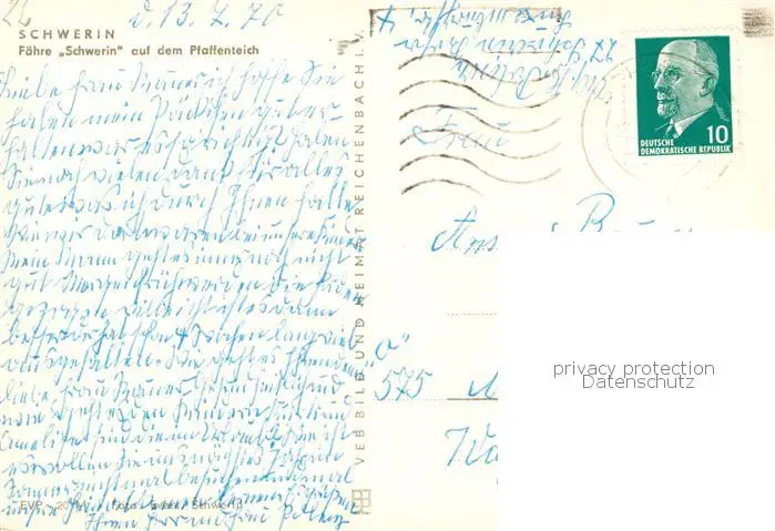 73830452 Schwerin__Mecklenburg Faehre Schwerin auf dem Pfaffenteich postalisch gelaufen 1975 Erhaltung siehe scans [WerneD78] [WernPID7 ]