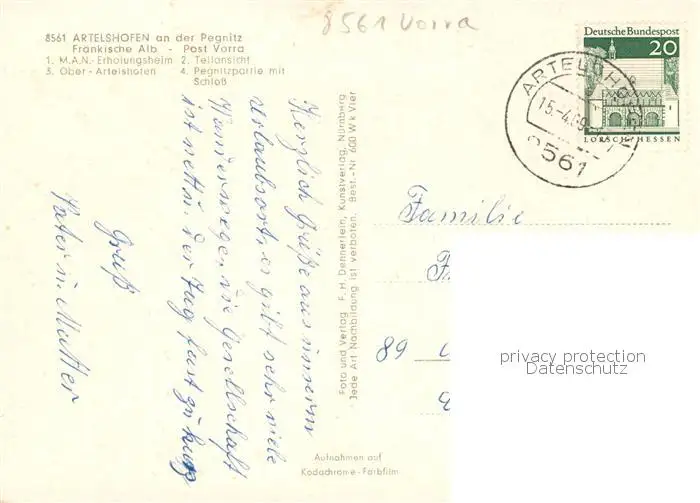 73830526 Artelshofen_Vorra MAN Erholungsheim Panorama Ober Artelshofen Pegnitzpartie mit Schloss postalisch gelaufen 1969 Erhaltung siehe scans [WerneD78] [WernPID7 ]