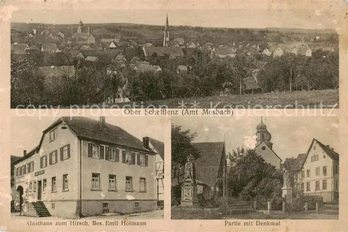 73830741 Oberschefflenz_Ober-Schefflenz Panorama Gasthaus zum Hirsch Partie mit Denkmal postalisch gelaufen bis 1920 Erhaltung siehe scans [WerneD78] [WernPID7 ]